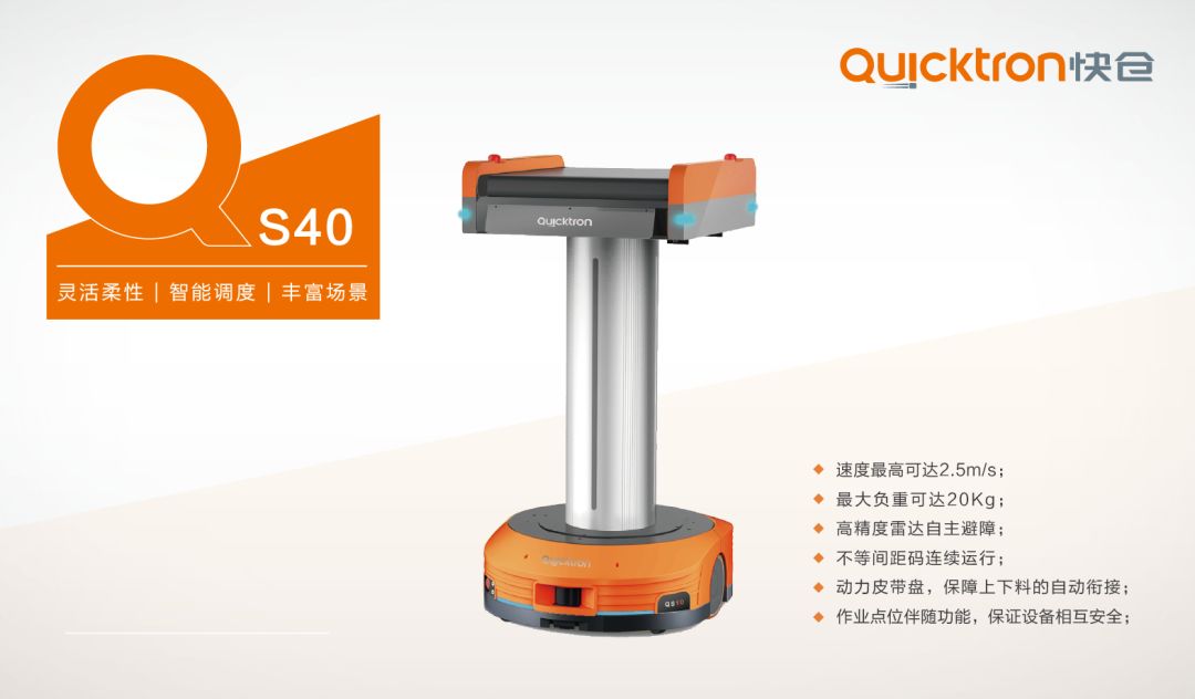 快仓自主研发的QS40智能移载机器人,拥有机器学习、高环境感知、多主体协同、自适应环境等功能,可满足7*24小时连续工作。通过动力皮带盘保障上下料的自动衔接,大幅提升生产产线搬运效率。同时可与立体库(AS/RS)、机械臂、输送线的线边库进行无缝对接。