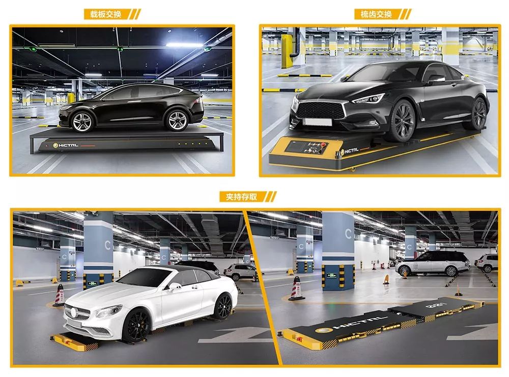 汇聚OMV车载版式、梳齿式、夹持式停车机器人采用麦克纳姆轮技术,结合汇聚研发的自动导航系统、多车调度系统和手机APP,实现全程无人化自动停车、取车。