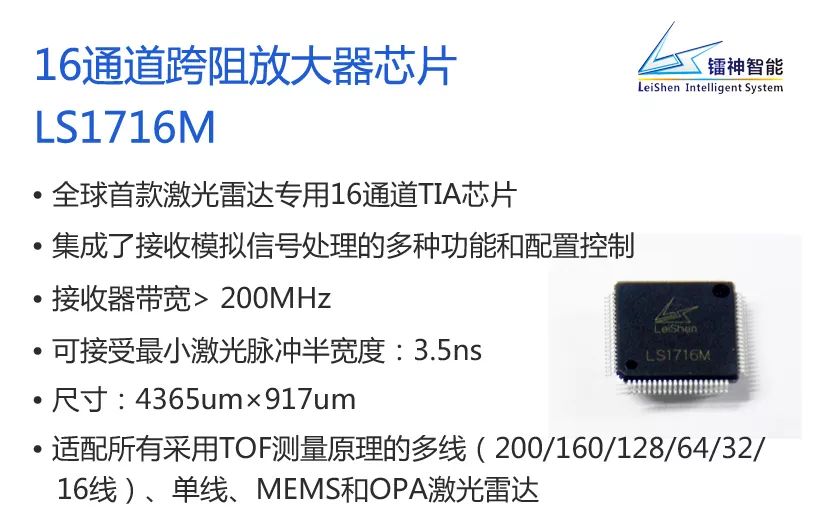 凭着深厚的科研实力,镭神智能以完整的研产销一体化经营体系,打造了市面最齐全的激光雷达产品矩阵,不仅是全球唯一一家同时掌握了TOF时间飞行法、相位法、三角法和调频连续波等四种测量原理的激光雷达公司,也是国内唯一一家自主研发出激光雷达专用16通道TIA芯片、激光雷达自动化及半自动化生产线、1550nm光纤激光器的激光雷达公司。