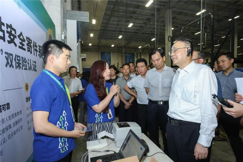 7月5日,国家邮政局党组书记、局长马军胜率领全国邮政管理局长座谈会代表参观菜鸟无锡未来园区、菜鸟驿站安全寄件系统。园区内近900台快仓智能机器人协同作业等人工智能技术助力行业数智化升级,获得马军胜的肯定。