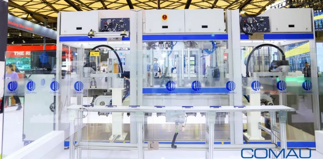 面对新能源汽车革命带来的挑战,柯马在AMTS 2019 也展示了柯马电池模组高速处理单元。该处理单元利用Comau SmartCube 柔性平台,使用定节伺服驱动同步输送系统,广泛应用于方壳、软包电池电芯的预处理。高速处理单元运动速度快,定位精度高,实现紧凑布局下柔性化高生产率处理。