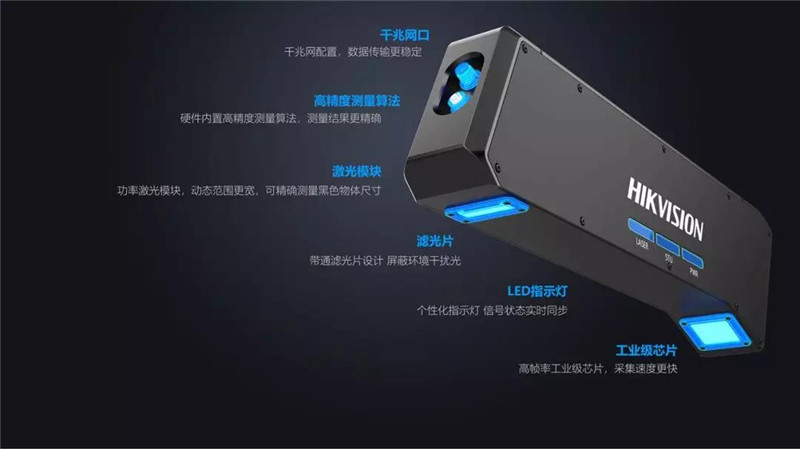 海康威视机器视觉自主研发新一代智能线激光立体相机MV-DL2040-04B-H,内置高精度图像处理、测量算法,实时输出高精度的体积测量结果,处理过程不占用CPU资源,结合高功率激光模块和独特的图像处理技术,让“黑包裹”无处遁形。