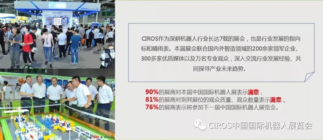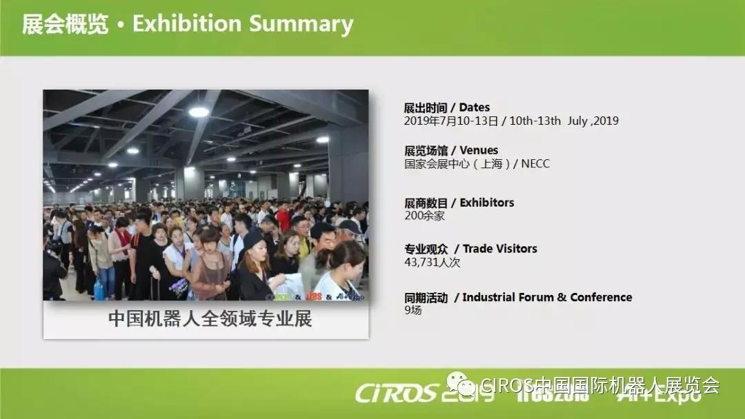 2019年7月10-13日,CIROS2019 第 8 届中国国际机器人展览会在国家会展中心(上海)正式开幕。本届展会由中国机械工业联合会、中国机器人产业联盟及上海中机联展览有限公司联合主办,联手海内外主要机器人行业组织为中国机器人全产业链打造专业的展览平台。