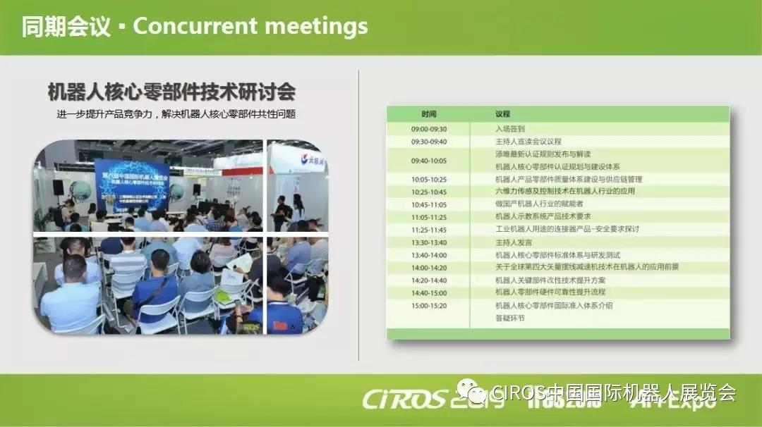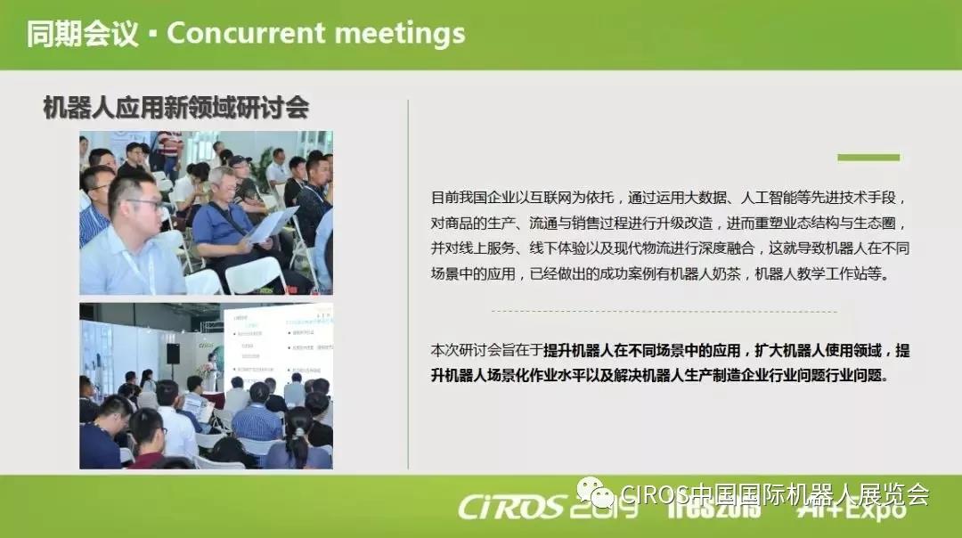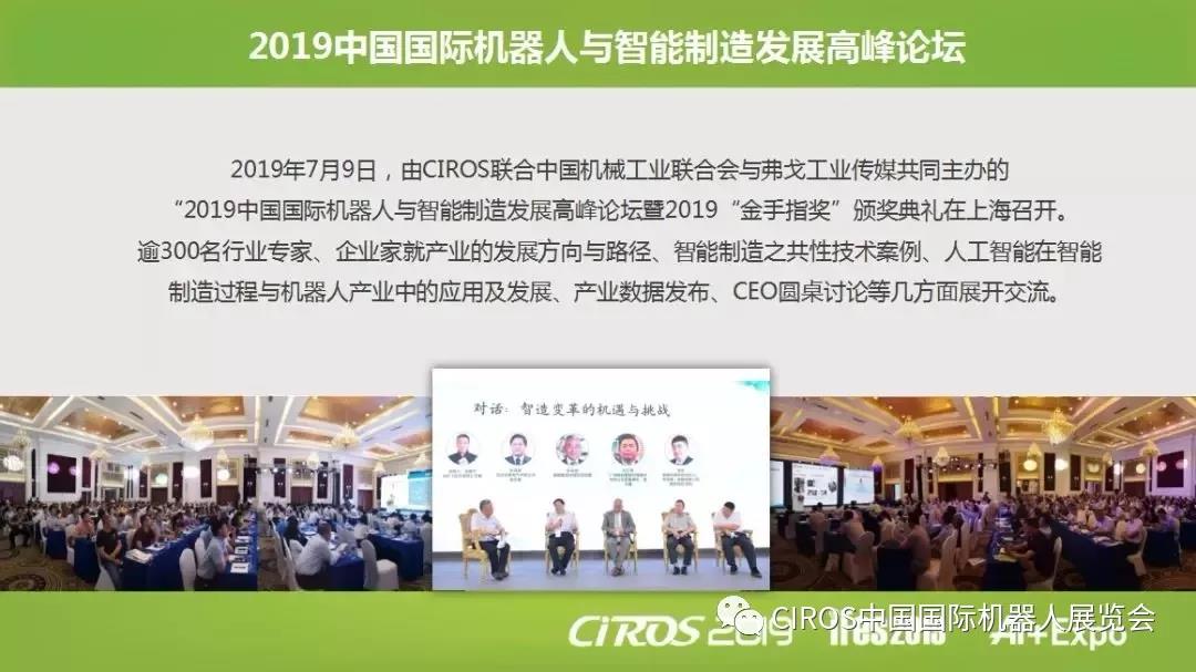 本届展会除了展示机器人本体、相关零部件以及集成应用以外,更多的智能制造系统平台技术、智能制造云平台技术、工业机器人AR控制技术以及AI人机互交技术,同时包括2019中国国际机器人与智能制造发展高峰论坛暨2019“金手指奖”颁奖典礼、集成应用大会AGV智慧物流自动化主题论坛、金属冲压及打磨抛光主题论坛、机器人核心零部件技术研讨会、机器人用柔性电缆认证宣贯会、机器人应用新领域研讨会、2019智能制造与产业生态高峰论坛等多场专业技术会议也将给大家带来丰富的行业信息与技术分享。同时国际机器人联合会与中国机器人产业联盟也发布详尽的统计数据报告。
