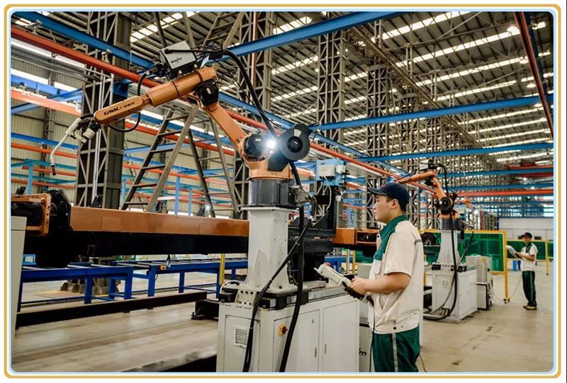 走进热轧车间,也能感受到工人们那触手可得在坚守中的热度。热与汗水的一触即发,是对工作最大的热忱。再看看门架锯切、组装的工人们,用数控加工、机器人焊接等智能化的高精技术,使产品蕴含了高端的元素。但高端的背后,永远有学习和付出的沉淀。