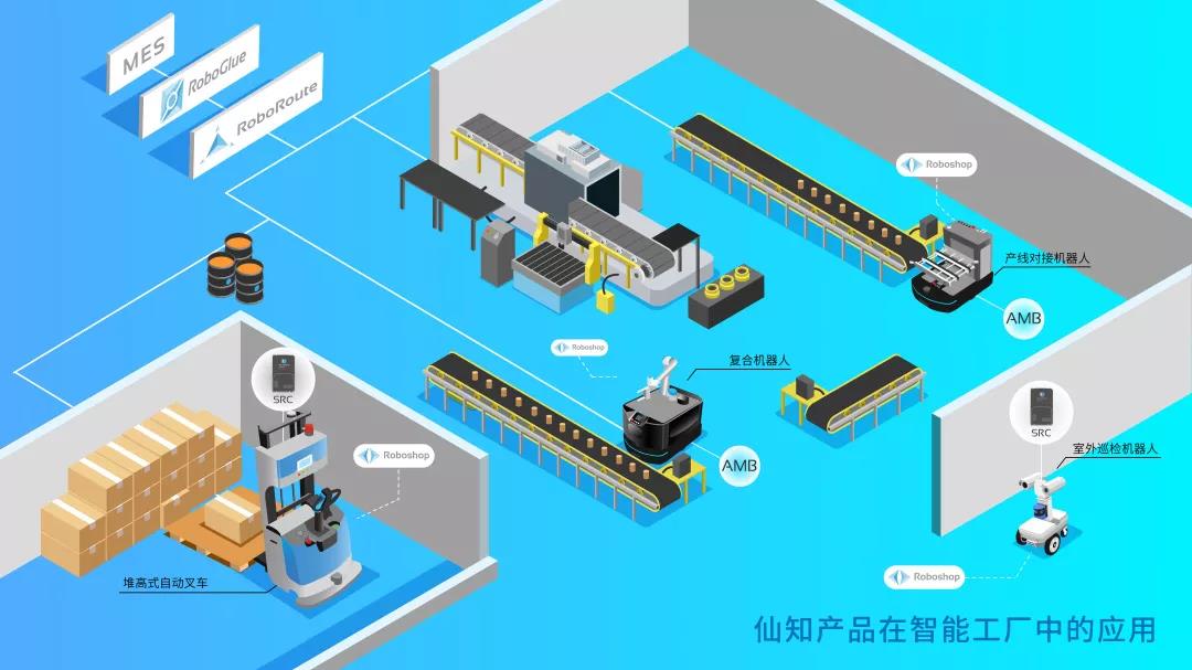 通过仙知自主研发的可视化操作软件Roboshop,一站式实现机器人的自动标定、建图、导航、配置及任务序列编辑等;配合多机调度系统RoboRoute,能够同时对上百台不同类型的移动机器人进行统一调度与部署,并为机器人提供最优路径选择与最优任务分配,满足工厂柔性化、智能化生产需求。仙知机器人全方位、场景化的产品、技术与解决方案,已经在汽车制造、家电制造、3C电子制造、半导体制造、电商仓储、安防巡检等多个领域得到了广泛应用。