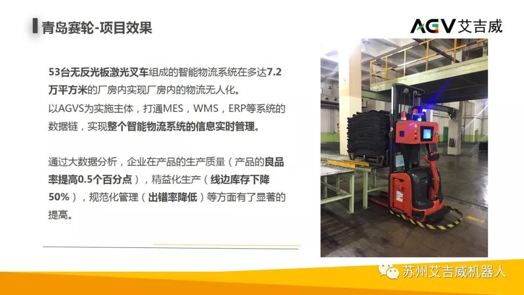 苏州艾吉威机器人有限公司是一家以独创移动机器人技术为核心,致力于智能化、科技化和平民化的智能制造领域的高科技企业。公司的机器人产品线包括拥有国际发明专利和国家发明专利的无反射板激光自主导航AGV系列和磁导航AGV系列等智能设备和系统。其中公司独创的无反射板激光自主导航技术填补了AGV无标志导航的空白,创造了AGV产业发展史上的突破,移动机器人产品畅销国内外。艾吉威凭借其强势的创新能力,占据了国产移动机器人行业举足轻重的地位。