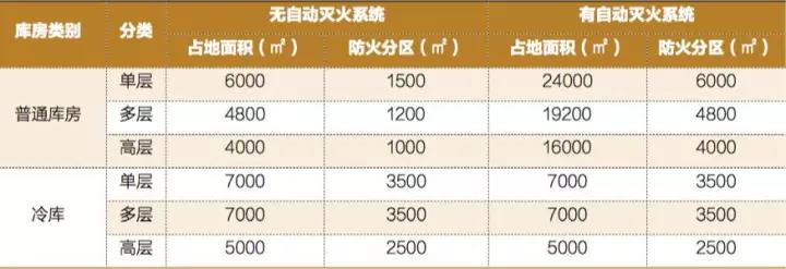 4. 仓库占地面积和防火分区(仅供一般性参考,视具体情况而定)