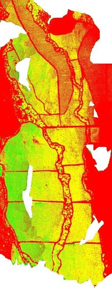 在一次飞行使用小型空中无人系统所拍摄的农田(NDVI图像)