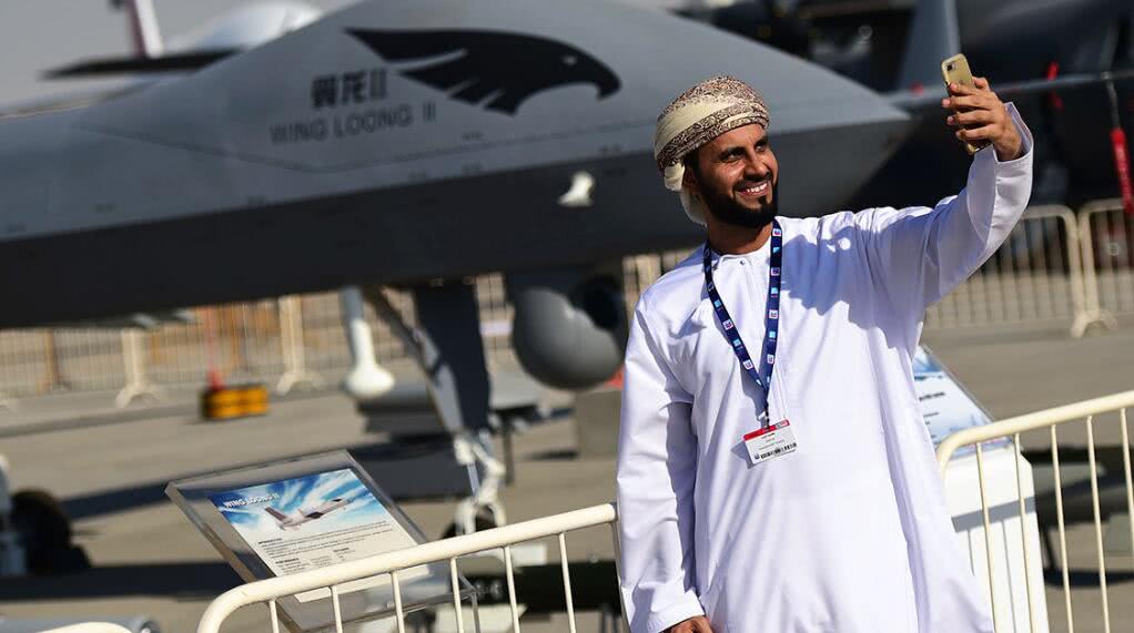 阿布扎比防务展上和“翼龙-II”合影的阿联酋人 图源:简氏防务周刊