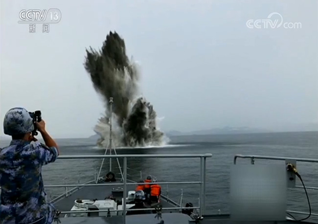距离雷区越来越近,随着一声巨响,红方成功将水雷扫除成功。