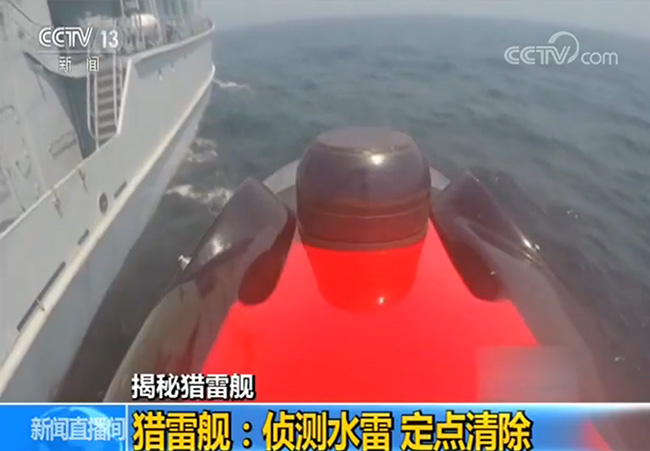 央视网消息:与扫雷舰广撒网的扫雷方式不同,现在还有一种新型的反水雷方式,那就是猎雷,那么猎雷舰又是怎样执行任务的呢?跟随记者到猎雷舰上看看。