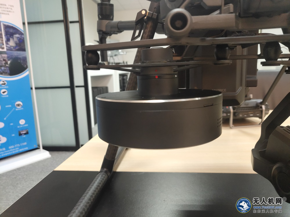 该款产品整体呈圆柱形,与大疆M200系列无人机的接头一致,拆装方便,并且与大疆无人机本身一致性很高。并能同时监测经度、纬度、高度、速度、温度、湿度、PM2.5、PM10等多种数据,也可实时显示无人机飞行过程的画面以及数据,云数据保存可随时查询历史数据。