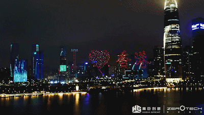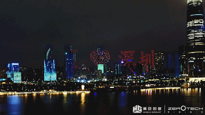 高巨零度无人机组成的彩灯字样