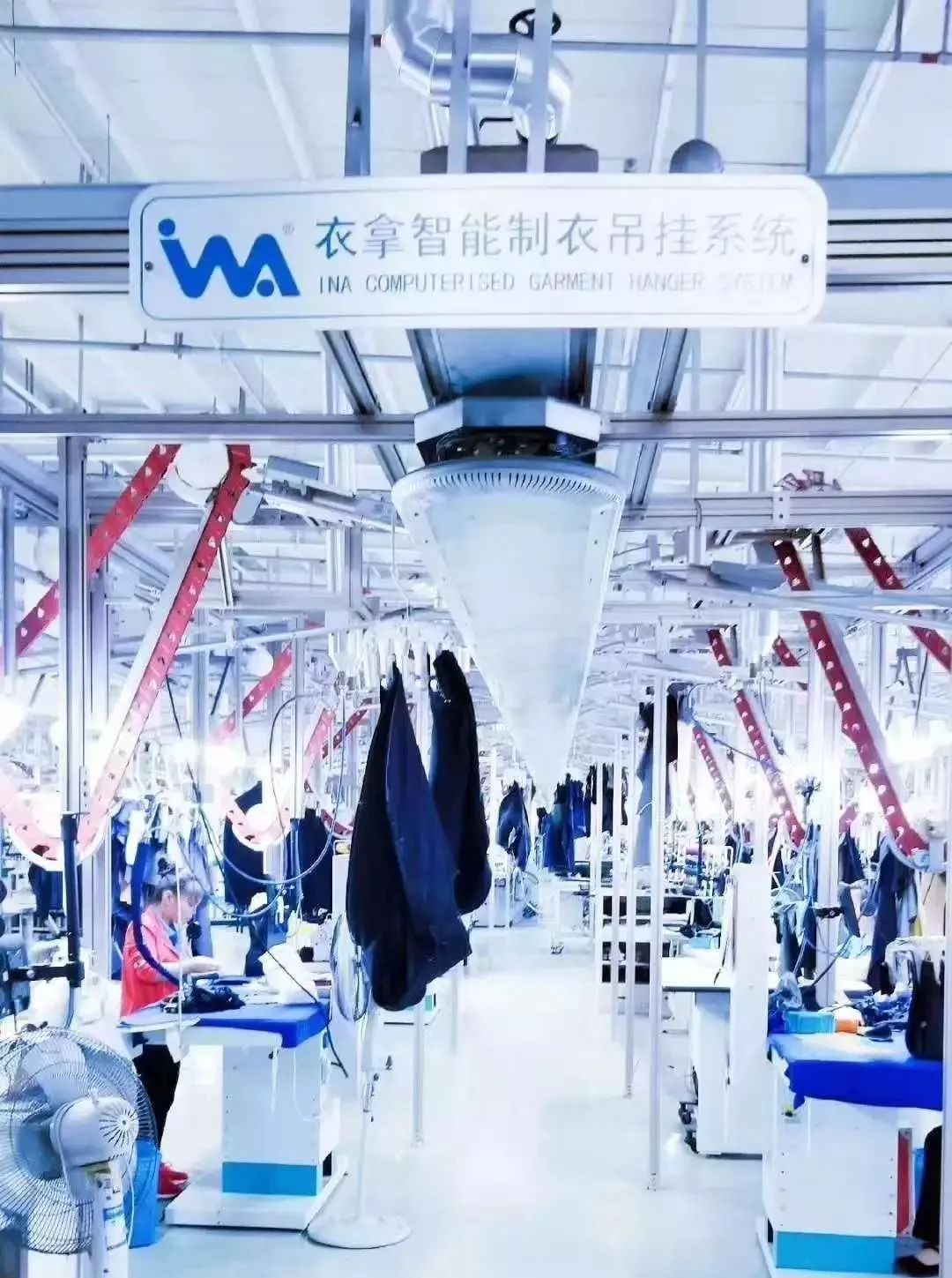比如吊挂系统作为车间的一个大型机器人,可以替代人工传输裁片的,并且很好的将传统缝制工作数据化,再结合软件就可以实现智能化管理。