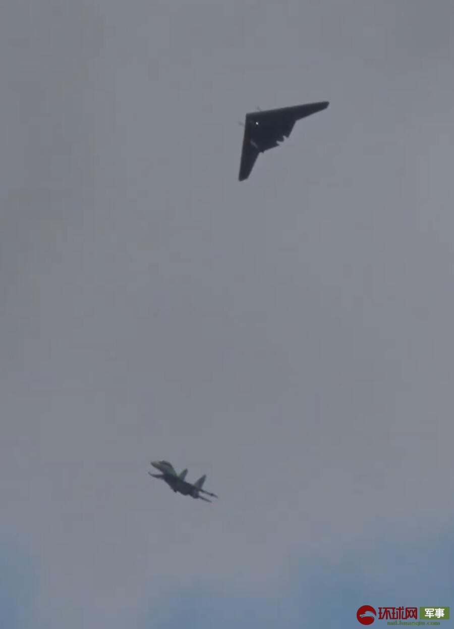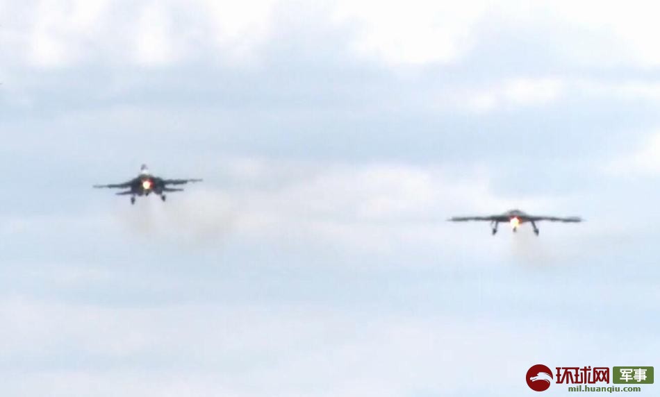 从画面中可以看到,在“猎人-B”无人机试飞过程中还有一架苏-30战斗机进行伴飞。