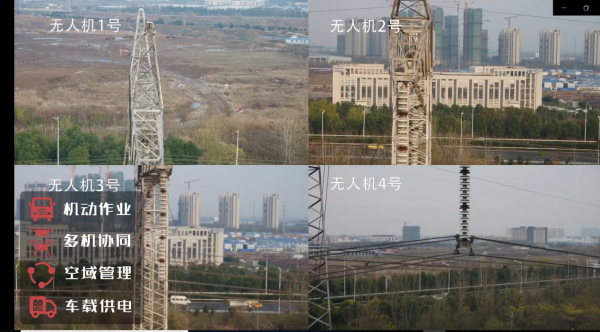 多个无人机同时作业需要考虑的因素十分复杂,如航线重叠,空域划分,碰撞事故预防和多机监控等。四机航母内嵌无人机多机协同算法,有效分配各作业无人机空域,建立独立的信息通道,保障四架无人机同时安全高效地对四座杆塔精细巡检。