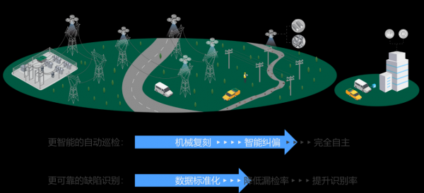 各地方电网公司经历了从人工巡检到无人机手动飞行作业的进化。无人机手动飞行作业有效缓解了电网巡视效率低、巡视质量不统一、无法定量判断设备状态、覆盖细节不够等问题。但是随着社会经济的高速发展,社会对供电可靠性的要求也进一步提高。在无人机大规模应用的背景下,如何进一步优化机巡作业方式成了新命题。