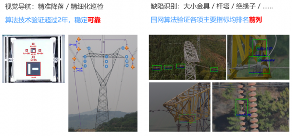 在变电站内部署固定式无人机机场,在云端管理系统下达巡检任务后,无人机自主起降并实现精细化巡检,任务完成后,无人机被机场自动回收,巡检数据传回云端,并借助AI算法快速识别缺陷。