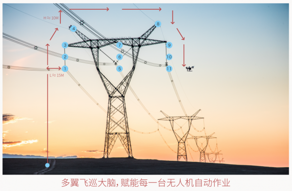 “自动飞行”,是多翼创新提供给电力客户的答案,由手动操控无人机到进一步赋予无人机智慧,实现无人机自主飞行,智能巡检。多翼创新自主研发“飞巡大脑”无人机自主飞行系统,在巡检实战中,巡检作业人员只需携带装有飞巡大脑APP的平板和无人机,即可告别传统的山路跋涉和手动操作,实现更安全更高效的巡检。