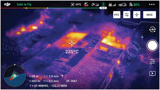 大疆“御” Mavic 2 行业双光版,搭载了红外光感摄像头,为救援应灾团队提供了低成本且高效的空中热成像解决方案。“御” Mavic 2 行业双光版通过MSX技术,将可见光影像和热成像结合,还能够增强图像的细节表达能力,帮助用户更好地识别物体和作业环境。