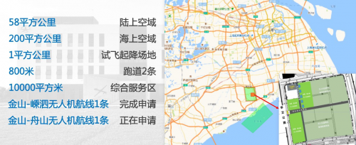 据了解,华东无人机基地是由民航华东地区管理局批准,上海市交通委、市经信委支持,上海市金山区政府牵头实施,金山工业区负责建设的无人机产业基地,是华东地区首个以政府为主导,涵盖多场景空域的无人机运行基地。目前,已完成建设的基地资源主要包括:经空军航管部门批准的陆上空域58平方公里及海上空域200平方公里;地面场地包括1平方公里的试飞起降场地、2条800米跑道,以及7000平方米的综合服务区;完成申请1条金山至嵊泗的无人机航线(金山至舟山的无人机航线正在申请)。