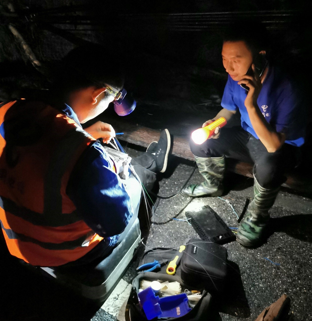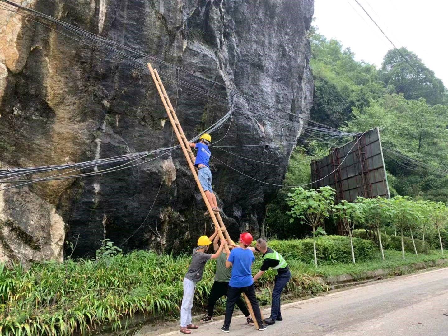 由于从鸡冠山场镇向上200米有两处断层,一处道路悬空,一处道路完全垮塌,汽车无法进入。为快速抢通山上重灾区通信,成都电信抢险人员将设备、光缆、油机、油料运到断层处,再通过大家肩扛、手抬把各类抢险物资运输进去,加快抢修,率先恢复琉璃村、竹根村、岩峰村通信。
