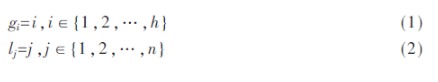 地图由导引磁条、工位组成,如图1所示,二者分别用线条和矩形表示。g表示工位,数量为h,按式(1)对其编号(图中小矩形右侧数字),则工位集合可以表示为G={g1,g2,g3,…,gh}。l表示线路,数量为n,规定横向、纵向线路编号分别用偶数、奇数表示并按式(2)对其编号(图中圆圈内的数字),线路集合为L={l1,l2,…,ln}。