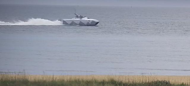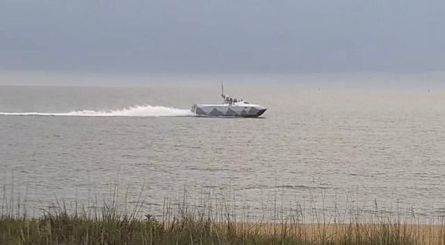 7月8日,有网友在社交媒体平台上发布了两张照片,展示了一艘正在美国弗吉尼亚海滩附近的海面上高速航行的M80“短剑”隐身试验船。据报道,该船拥有创新的五体设计和先进的碳纤维复合材料结构,能够以极快的速度航行。