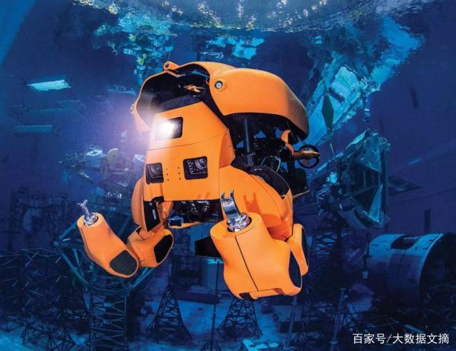 和宇航员一起在水中漂浮的还有一个巨大的橙色的机器人——Aquanaut。