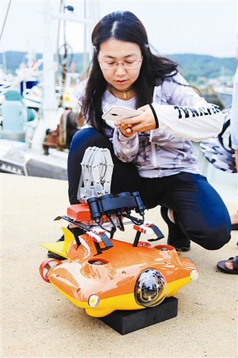 大部分水下机器人都会使用机械臂来抓取目标物。本版图片均由记者王韬飞摄