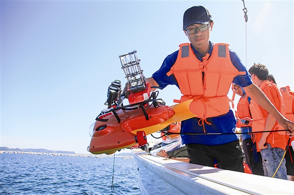 要说本次水下机器人目标抓取大赛的最大变化,便是机器人作业的领域由近岸海域网箱内升级到开放海域,在技术挑战性上更接近真实海域水下复杂情况,比赛环境更接近实际作业场景。裁判们通过大屏幕观看每一组选手的海底作业情况,对于这些失误,他们反而觉得是好事儿。“没有这些实践,我们哪能知道机器人目前的真实发展水平?选手们哪能知道自己的薄弱点在哪?”“獐子岛的海域很清,即使十米深的海底,选手们的视线仍旧不错,这个海底环境是给水下机器人练手的最好尝试。如果光在实验室里试验,它们是经不起风浪的!”围绕着今年的环境新变化对成绩造成的影响,裁判专家们纷纷表示,他们有心理预期——“这恰恰表明了水下机器人正在向应用靠拢,我们期待着有一天它们能优秀地完成水下抓取、水下救援、水下勘探……虽然这一天还很远,但实现这一切的前提是,水下机器人必须走到真实的环境里接受锻炼!”国家自然科学基金委信息学部副主任李建军说。