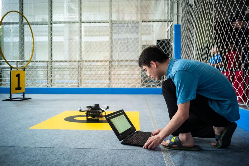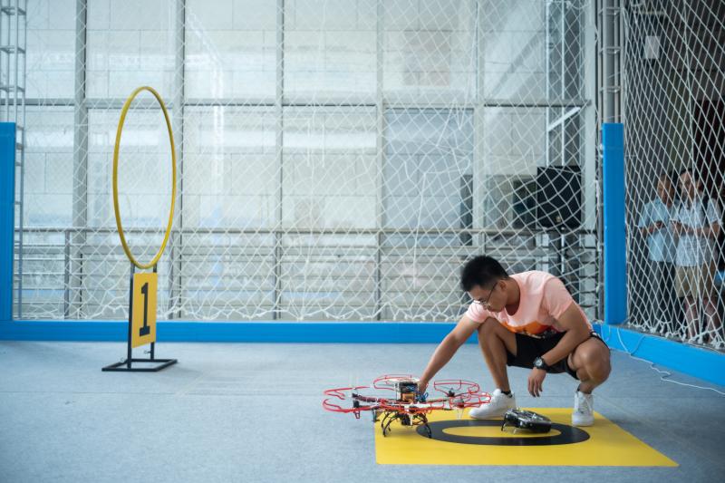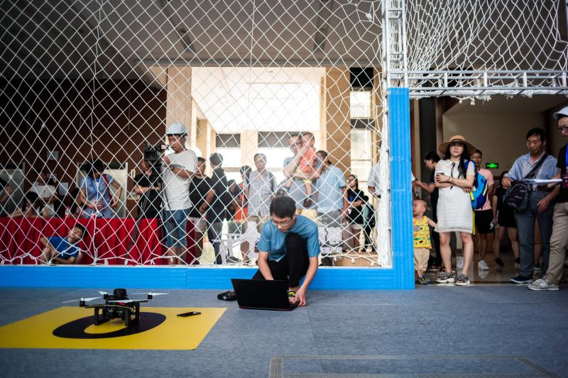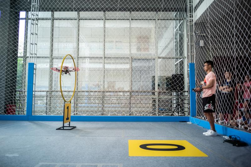 8月25日,在上海交通大学闵行校区微电子大楼,上观新闻记者现场感受第三届全国无人飞行器感知技术竞赛的现代科技。