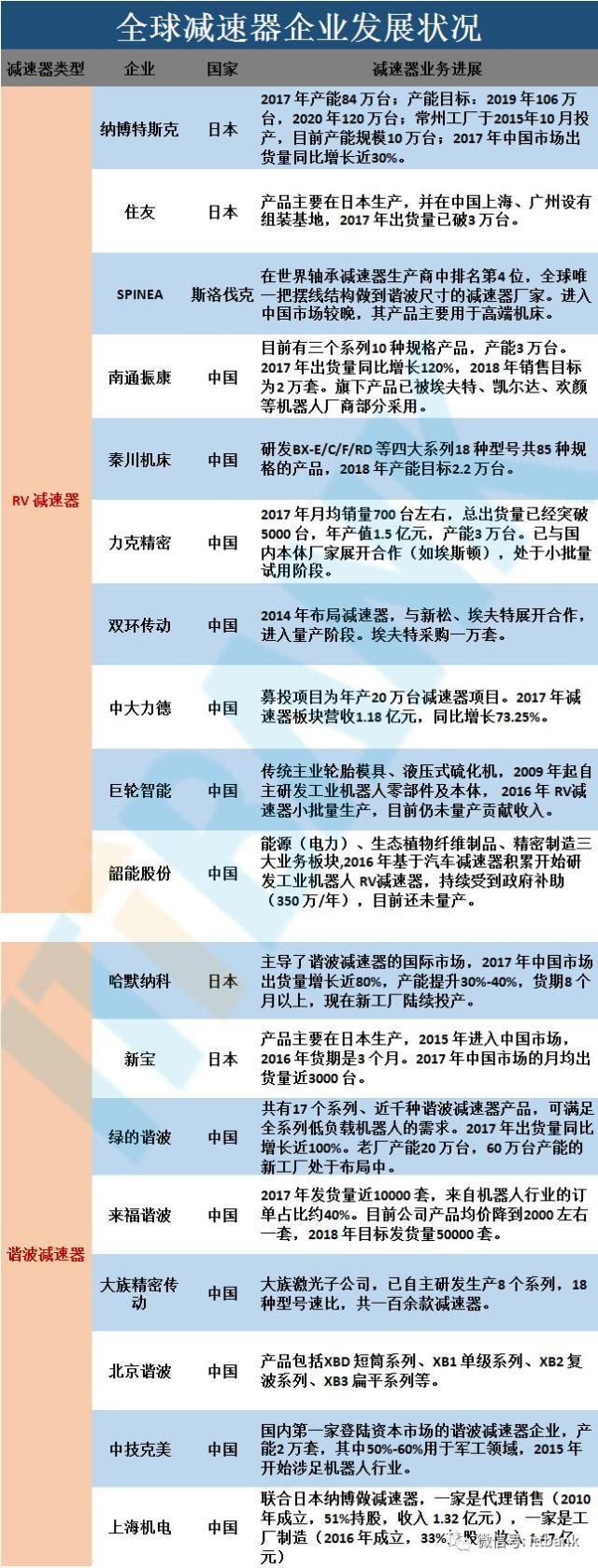 从国内外产品技术指标来看,国外产品信息相对完善,每种规格对应的各技术指标都有精确的数值呈现。而国内在这方面略显欠缺,表明国内企业在检测能力方面的不足,缺少严格的质量管理体系。目前,国产减速器还存在两方面的问题:1.产品系列不健全。日本纳博具备全系列产品,基本上可以应用于所有领域。根据纳博官网的披露,其RV-N系列产品还处于专利保护期,而国内产品系列相对残缺;2.一致性问题。国产减速器在实际使用环境下的性能,与实验室性能无法完全匹配,个别产品存在漏油、精度降低等情况,是阻碍国产减速器进军高端市场的原因之一。