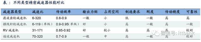 精密减速器的存在使伺服电机在一个合适的速度下运转,并精确地将转速降到机器人各部位需要的速度,提高机械体刚性的同时输出更大的力矩。与通用减速器相比,机器人关节减速器要求具有传动链短、体积小、功率大、质量轻和易于控制等特点。