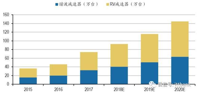 RV减速器数量=六轴多关节机器人*4+(关节型手臂+协作机器人)*3;
