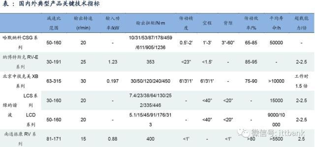从谐波减速器的技术指标来看,国内的苏州绿的和中技克美的减速比范围与日本哈默纳科水平相当,产品性能基本满足要求,目前已经大量应用于国产机器人。而国外产品在输出扭矩、平均寿命和一致性等技术指标上依然占据优势。