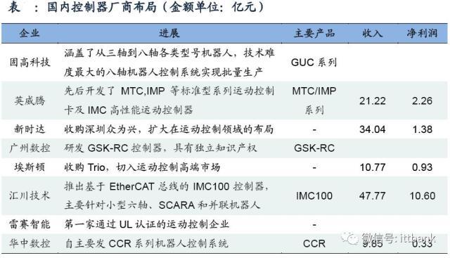 竞争格局:硬件差距较小,难点集中于软件。控制器本质上就是一个数据处理器,随着半导体技术的成熟,半导体芯片的性价比越来越高,因此控制器在硬件上并无太高门槛。在机器人的核心零部件中,控制器的技术难度是最低的,国内企业开发的控制器产品已经可以满足大部分功能要求。但控制器的核心在于算法要与机器人本体相匹配。目前,国外主流机器人厂商的控制器均是基于运动控制平台进行自主研发,以保证匹配性,导致国内企业控制器尚未形成竞争优势。可以说,国产控制机在硬件上与国外差距不大,差距主要是算法和兼容性方面。