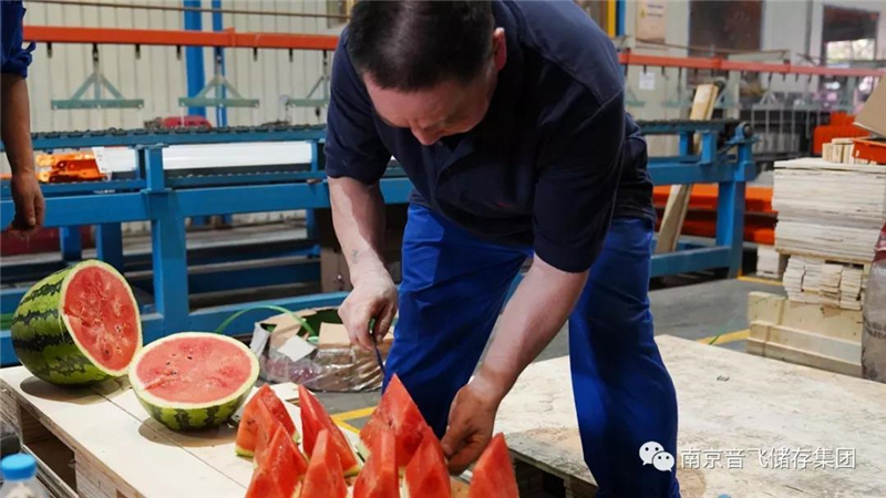 体恤高温环境工作的不易,音飞集团为一线员工们准备了清凉解暑的酸梅汤、绿豆汤、西瓜、饮料等,为炎炎夏日带来阵阵清凉。