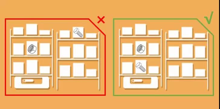 举个简单例子,生产过程中螺栓与螺母一般会配套使用,则认为这两种物料关键度高,因此入库时推荐上架到一个货架上,出库去产线时搬运一次货架就可以实现这两个物料的拣选,将会有效提高单个货架订单命中率,减少货架搬运次数。