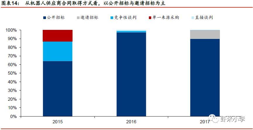 国网江苏是配电站巡检机器人的先行试点,2015 年,亿嘉和率先在江苏实现销售,后陆续开发其他试点省份,在一定程度上开拓和引领着客户需求。亿嘉和招股说明书数据显示,2015-2017 年,公司的配电站巡检机器人销量分别为50/270/448 台,以中标金额统计的市占率分别达到79.67%92.11%77.78%;从其他参与者中标情况来看,山东鲁能于2016年开始获得订单,杭州申昊与深圳朗驰于2017 年开始获得订单。虽然竞争对手进入会加剧行业竞争,但是亿嘉和在配电站巡检机器人方面项目经验丰富,同时公司充分研究客户需求,并不断增加产品的功能模块和巡检指标,提升产品的技术门槛,使得公司的产品竞争力始终处于行业领先的地位。