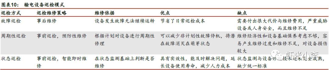 智能运维将成为投资重点。国网“十二五”对电力系统固定资产投资建设高峰结束,投资重点将从“基础建设”向“运维”转变,基数庞大的电力设备的监控、维护、保养等需求都将充分释放。美国电力研究院(EPRI)和施工规范协会(CSI)的统计数据表明,在电网系统实施状态检修可以提高设备利用率2%~10%,节约检修费用25%~30%,延长设备使用寿命10%~15%。现阶段国家电网的运营管理能力已经跟不上电网发展的节奏,国家电网也必将在投资规划方面更多地向电力系统运维和管理方向倾斜。电网信息化、自动化、智能化升级必将带来更多高技术含量的电力二次设备的投资,我们预计“十三五”期间,电力系统智能巡检产品及服务市场将成为电力系统投资的重要“风口”。