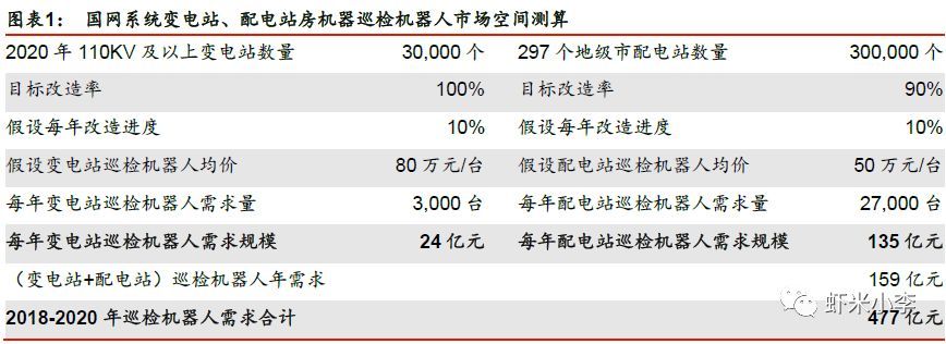 2018-2020 年国网系统电力巡检机器人市场空间合计477 亿元