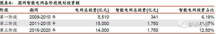 预计2016-2020 年智能电网总投资保持高位。2010 年3 月的《国家电网智能化规划总报告(修订稿)》显示,2016-2020 年智能电网建设进入第三阶段,投资额为1,750 亿元,占电网投资比例由11.67%升至12.5%。2010 年9 月的《国家电网公司“十二五”电网智能化规划》将第二阶段投资总额调整为2,861 亿元,占比升至19.07%。2016-2017 年国网电网投资为4,964/4,854 亿元,2018 年计划投资4,989 亿元,按《规划总报告》中12.5%的比例计算,2016-2018 年智能电网投资分别为621/607/624 亿元。假设2019-2020 年电网总投资规模维持在4,900 亿元左右,我们预计2016-2020 年智能电网合计投资将达到3,076 亿元。我们认为,智能电网投资总额有望保持高位。