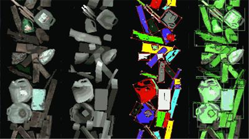 垃圾分拣系统在识别技术上主要分为两部分,一方面根据双目结构光摄像头、RGB-D摄像头此类深度摄像头所采集到的数据判断可分拣区域;再以单独的视觉识别系统架在传送带之上,利用计算机视觉算法识别垃圾的材质,最终通过双臂机器人进行分拣。在精准抓取垃圾以及分辨垃圾材质时,如何最大程度上避免识别复杂工件慢、精确度低以及定位不准等问题,对深度摄像头等前端硬件的选型以及视觉识别技术的算法要求也随之提高。