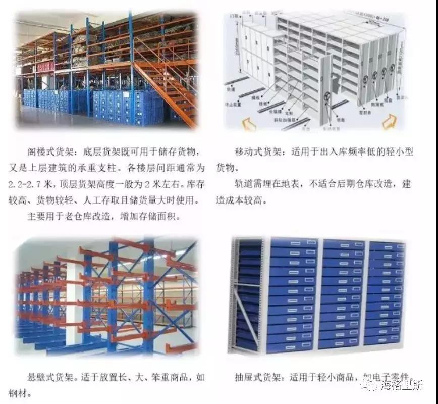 按结构:层板式、托盘式、驶入式、重力式、悬臂式、阁楼式;