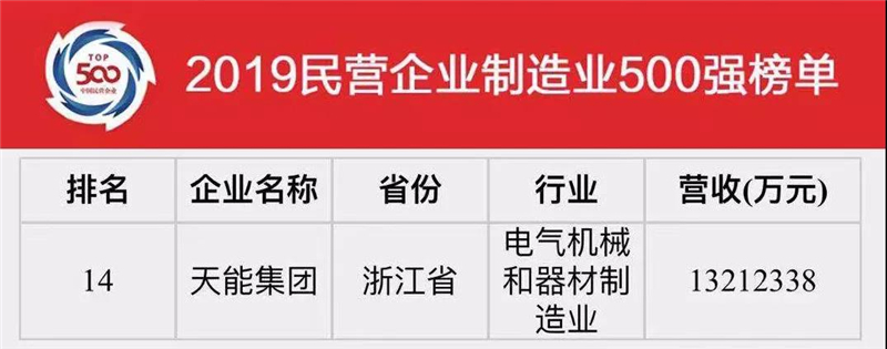 今天,2019中国民营企业500强峰会在青海西宁举行,会上发布了“2019中国民营企业500强”系列榜单及《中国民营企业500强调研分析报告》等。天能集团再次荣登中国民营企业500强,位列第30位,较上一年提升2位;同时,还荣登民营企业制造业500强榜单第14位。双榜排名均为行业第一。