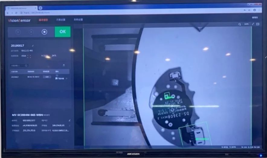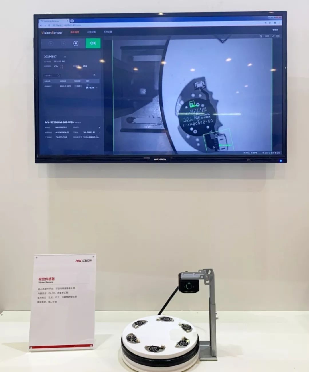 海康威视视觉传感器结构小巧,采用嵌入式硬件平台,可进行高速图像处理;内置高精度定位、BLOB、测量等视觉算法工具,支持有无、正反、位置、尺寸等防错检测;可使用Web客户端进行配置,操作简单;接口丰富,兼容多种工业传输协议。现场展示了焊点有无识别检测。