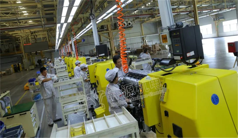 井源机电规划实施的AGV柔性装配线项目由28台装配AGV、导航系统、调度系统、拣选系统等组成,替代传统的地链或输送机模式,通过AGV实现发动机搬运、升降、旋转、人工装配。动力总成柔性装配线能实现100多个品种混线生产,与SPS物料自动匹配,自动挂接SPS小车,多种机型的物料都能有序集配上线装配,实现智能物料运输及生产制造信息化、柔性化、智能化。