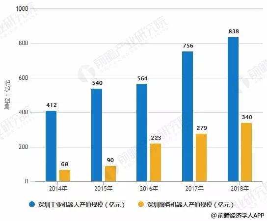 2014-2018年深圳工业机器人、服务机器人产值规模统计情况